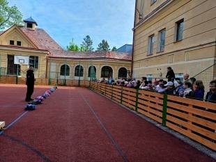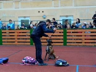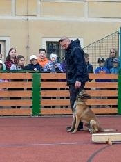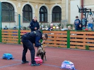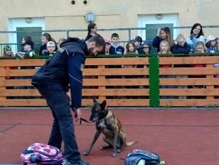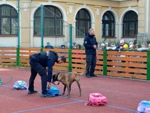 Centrem pozornosti se stala dynamická ukázka kynologického střediska. Psovodi dětem předvedli ukázky výcviku služebních psů a jejich schopnosti při vyhledávání drog. Děti s napětím sledovaly, jak cvičení psi spolehlivě označili ukrytou drogu v doručených balících i v několika školních batozích. Nadšení malých diváků bylo obrovské a výkony čtyřnohých specialistů odměnili zaslouženým potleskem. Pro příslušníky Vězeňské služby byla návštěva školy také příležitostí k praktickému výcviku. Využili hřiště školy k procvičení poslušnosti psů a zdokonalení jejich dovedností při hledání drog v diferenciačních truhlících.